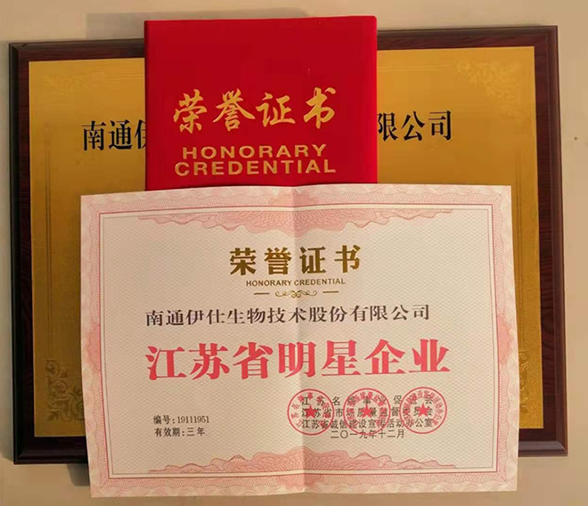 南通伊仕生物技術股份有限公司榮獲江蘇省明星企業稱號 |