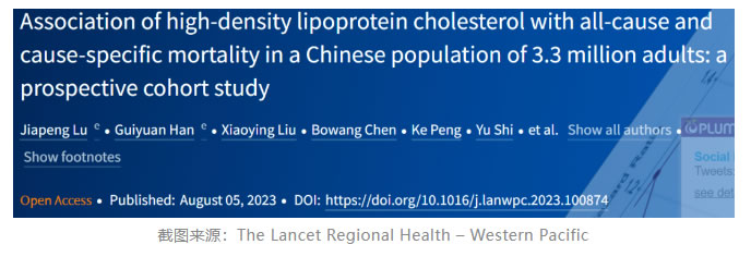 近期發(fā)表于The Lancet Regional Health – Western Pacific的一項(xiàng)研究,旨在全面評(píng)估中國(guó)人群中HDL-C與全因死亡率和病因特異性死亡率的關(guān)系,并評(píng)估高HDL-C對(duì)比低HDL-C的死亡率,從而為人群層面的HDL-C管理策略提供新的知識(shí)和深入的見(jiàn)解。