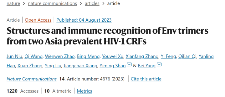 “免疫聚焦型疫苗策略”的開展不僅需要廣譜中和抗體抗原表位的指引,也需要對Env蛋白的結(jié)構(gòu)與抗原特征進(jìn)行全面掌握。當(dāng)前,針對Env蛋白的結(jié)構(gòu)與抗原特征研究均集中于在歐、美、非洲流行的A、B、C亞型,對于在亞洲尤其是我國占主導(dǎo)地位的流行重組亞型CRF01_AE和CRF07_BC則鮮有相關(guān)報(bào)道。此外,僅有極少數(shù)廣譜中和抗體從感染流行重組亞型的個體中分離,且它們的抗原表位與中和機(jī)制也尚未得到充分闡釋。上述信息的缺乏阻礙了我們對于流行重組亞型Env蛋白的結(jié)構(gòu)與免疫原性的認(rèn)識,也不利于免疫聚焦型疫苗研發(fā)策略在我國的開展及應(yīng)用,在此背景下,楊貝課題組與合作者開展了深入的研究。